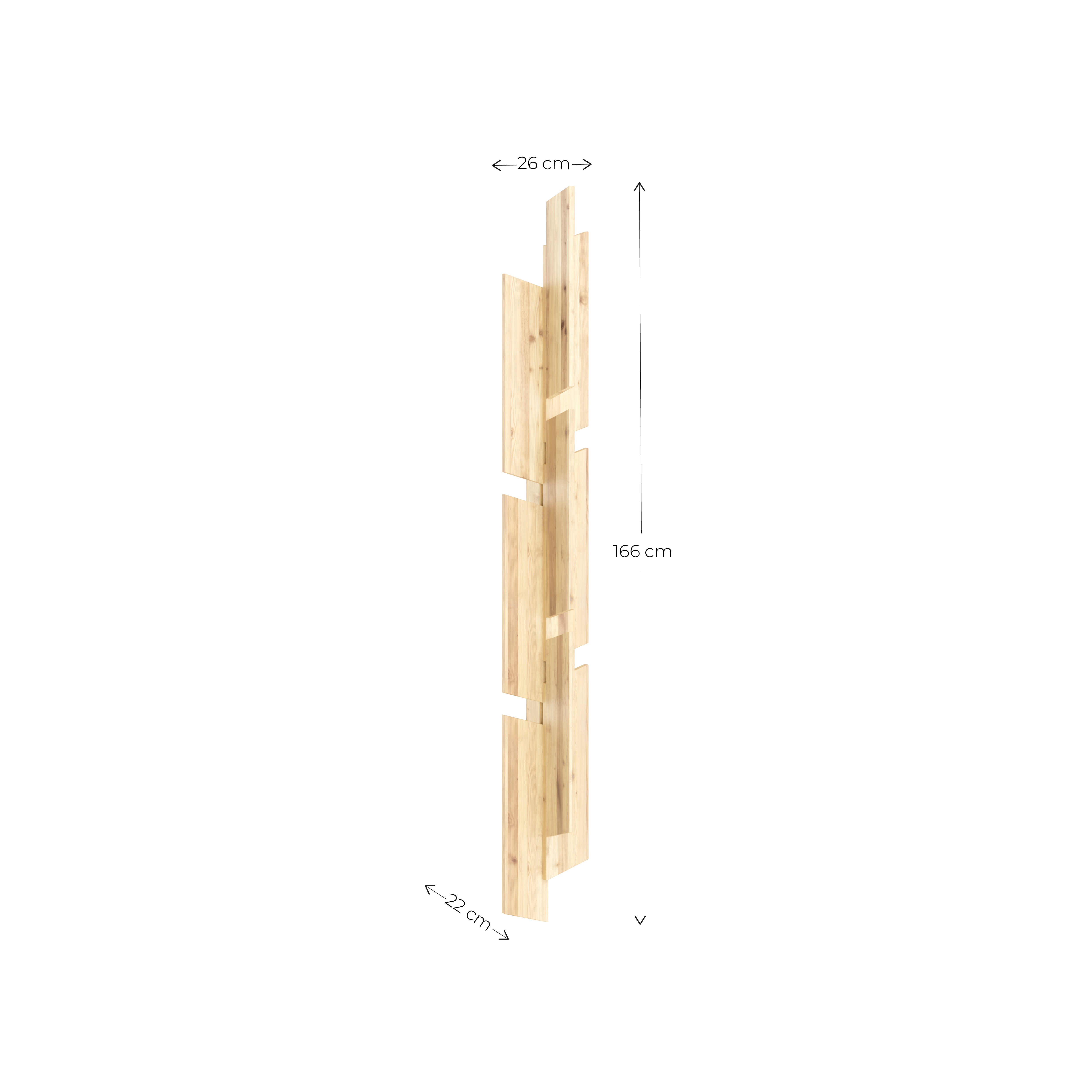 Keeper Wall Rack is the wall-mounted version of the Keeper series - designed by Fabien Roy - and combines organic lines with a rigorous design language. The stacked planks of raw pine create a sculptural coat rack that both catches the eye and manages storage.